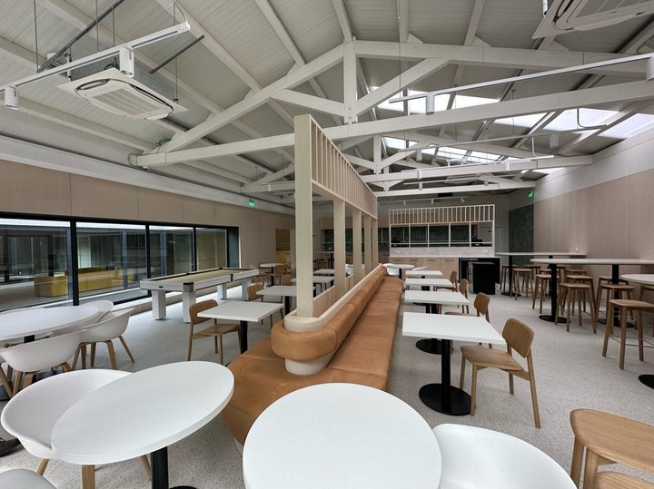 No interior do edifício localiza-se uma zona de estacionamento com 65 lugares no rés-do-chão, enquanto o primeiro, segundo e terceiro andares são compostos por áreas de estar e espaços de trabalho. As salas de reuniões e as áreas de lazer, interiores e exteriores, encontram-se no piso superior, comunicando com os terraços com cerca de 880 metros quadrados.